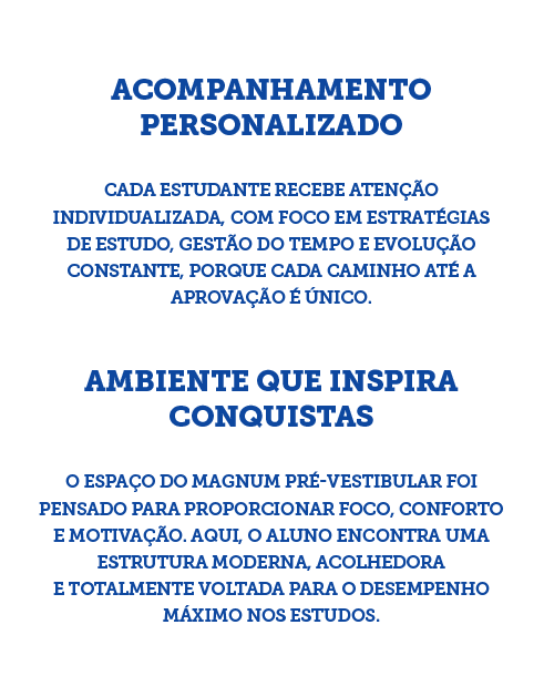 Com mais de 30 anos de história e referência em educação de qualidade, o Colégio Magnum criou o Pré-Vestibular para oferecer uma preparação completa e eficiente para quem busca as melhores universidades do país.